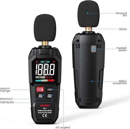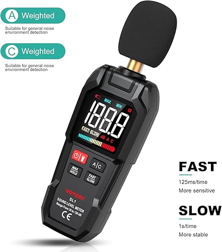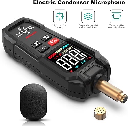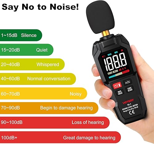 Schallpegelmesser, Digitaler Tragbarer Schallpegelmesser 30 dB bis 130 dB mit LCD-Display, geeignet für Zuhause, Büro, Baustelle, Fabrik usw.