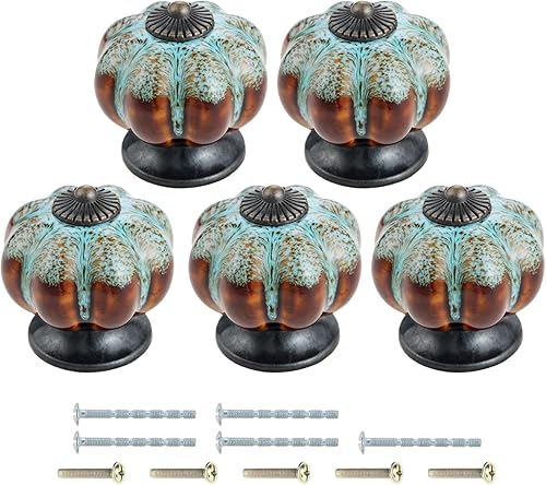 Mgoodoo Keramische Türknäufe Antique Kürbisgriffe für Schrank Kleiderschrank Schubladen Küchenmöbel Griffe Pullis (2 Stück, Leopardenblau)