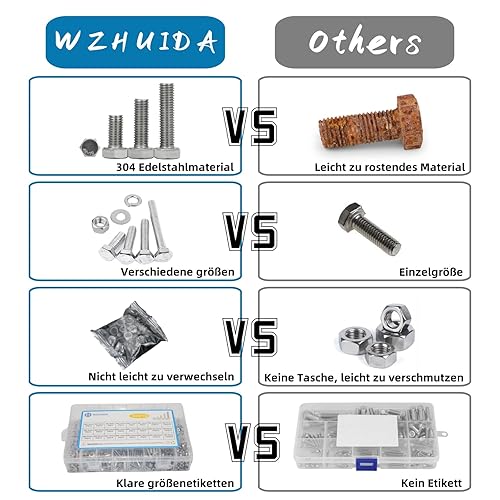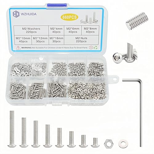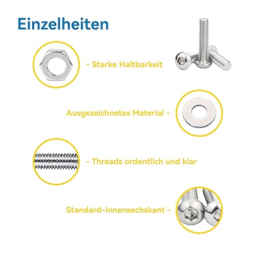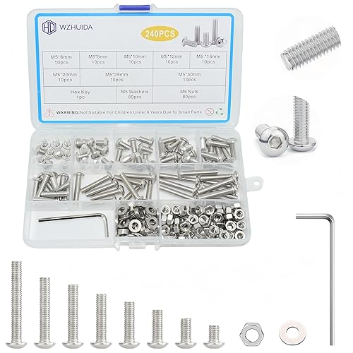 WZHUIDA 630 Stück M3 Schrauben Set, Edelstahl Linsenkopf Schrauben Metrisch Innensechskant Schrauben Muttern und Unterlegscheiben Sortiment Set, Gewindemaschinen Sechskantschrauben