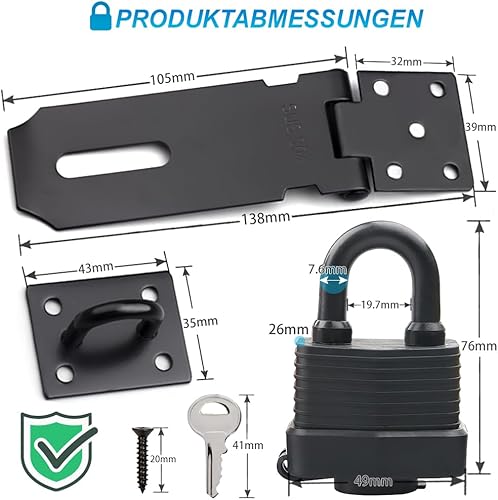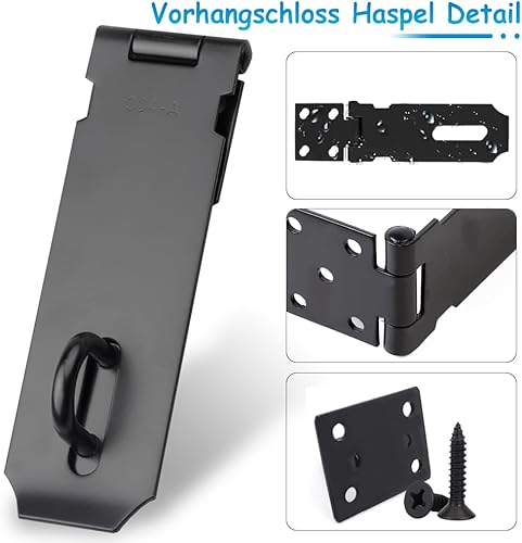 Edelstahl Riegelschloss Haspe&Vorhängeschloss mit Schrauben, Sicherheits Vorrichtung für Gartentor Türriegel, 4 Zoll Schloss Vorrichtung Überfalle, Schuppenschloss für Garten, Schlafzimmer Tür Schrank