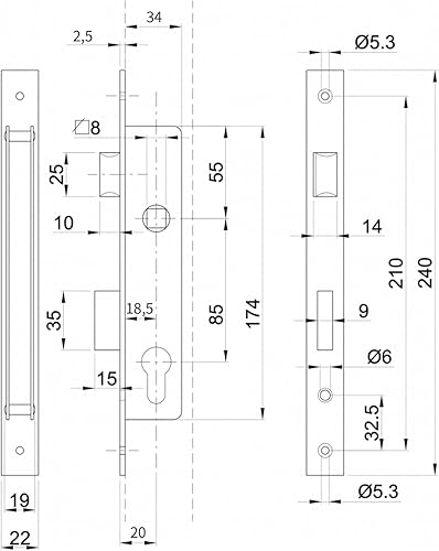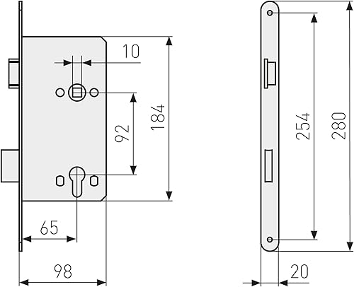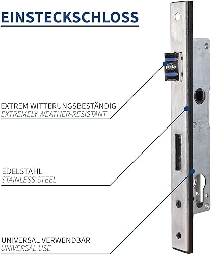 ATTAS Einsteckschloss inkl. Profilzylinder für Drehtore – Dornmaß 20 mm, für Gartentor Rohrrahmenschloss, geeignet für Rahmenprofile Rahmenschloss, Wechselfunktion, DIN-Links & DIN-Rechts Gartentür