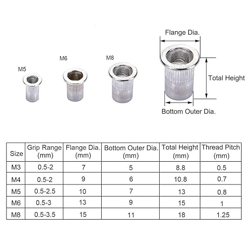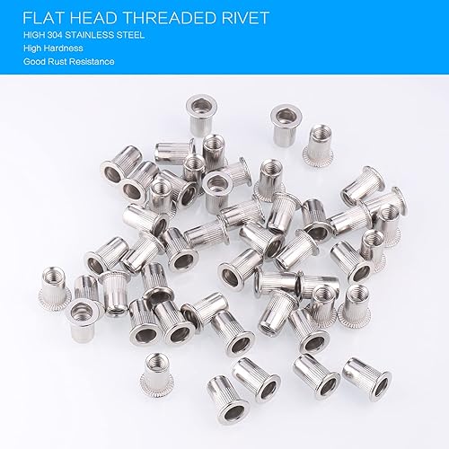 Hejo 60 Stück Nietmuttern M8, Nietmuttern Edelstahl Flachkopf, Blindnietmutter Gewindenieten für Befestigung Möbeln Dekorationen Handwerk