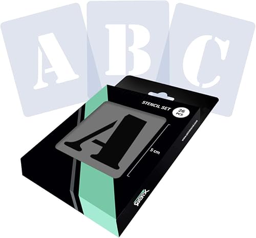 QBIX Buchstabe Schablonenset, Alphabet Schablone, Großbuchstaben Schablone Schriftart, Buchstaben Höhe 5cm - wiederverwendbare Malerei, Kunsthandwerk, Wand, Möbel Schablone
