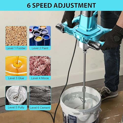 Farb-Mörtelrührer, 3100W Rührwerk, Elektrischer Hand-Zementmischer, mit 6 Einstellbaren Geschwindigkeiten, Arretierbarer Schalter, Ergonomisch, Industriemischer für Farbe, Gips, Zement, Mörtel