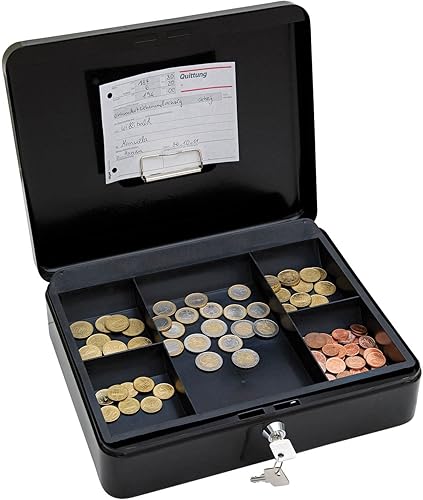 WEDO 145400H Geldkassette mit Geldnoten- und Belegeklammer, 5 -Fächer-Münzeinsatz, 30 x 24 x 9 cm) weiß