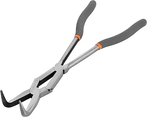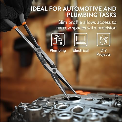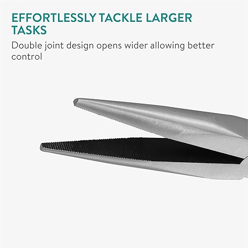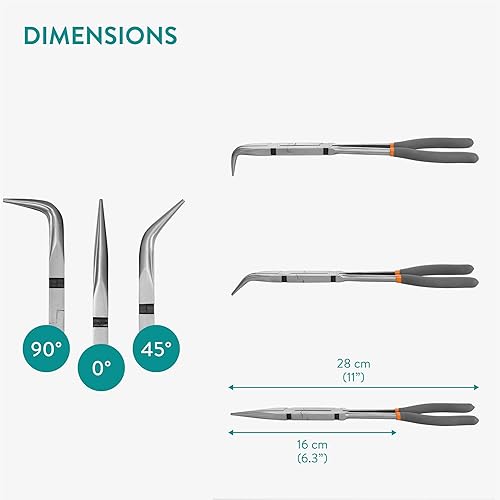 Navaris 2x Nadelzange lang - Spitzzange Set - Doppelgelenk Zange - 2 Spitzen - Gerade 45 Grad - Hakenlöser Angeln - Angelzange Greifzange lang - Flachzange Flachrundzange