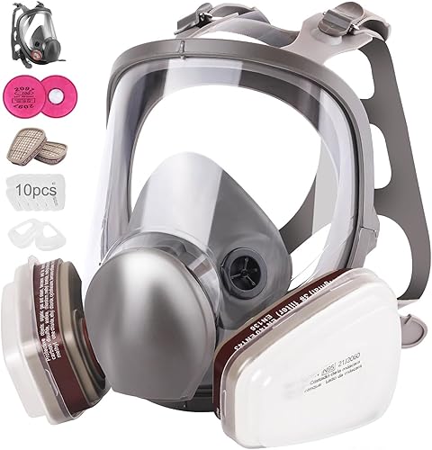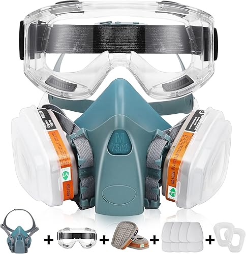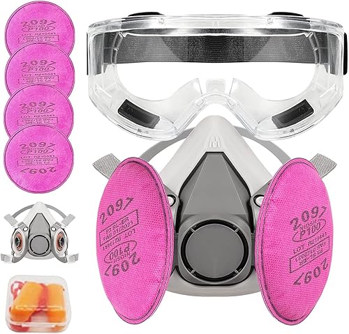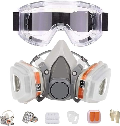 LAMANICE Atemschutzmaske für Halbgesicht, Wiederverwendbar Gesichtsschutz, mit 4 Pcs 2097 Filter und Schutzbrille, Ohrstöpseln, für Farbe, Staub, Chemische, Epoxidharz, Schneiden, Polieren