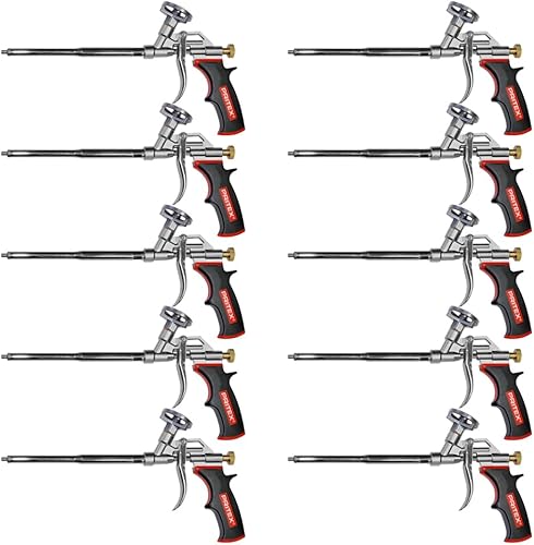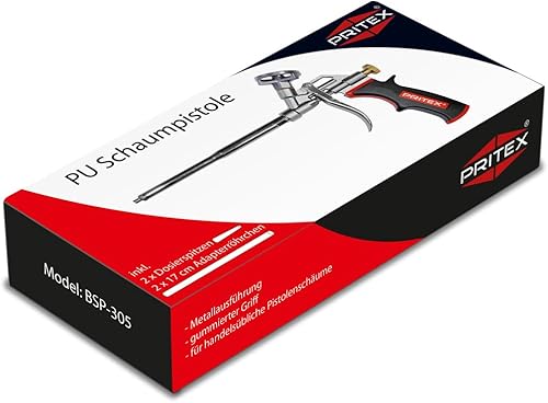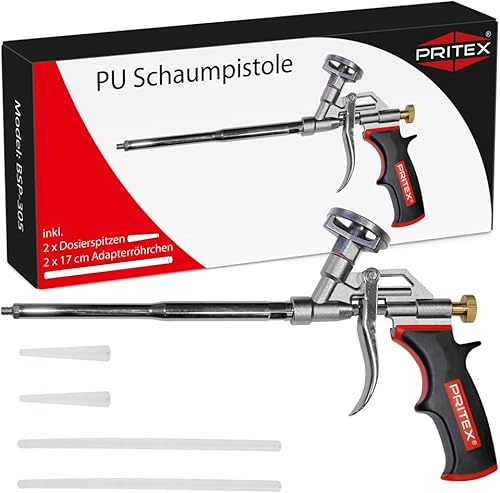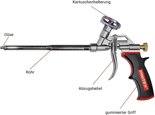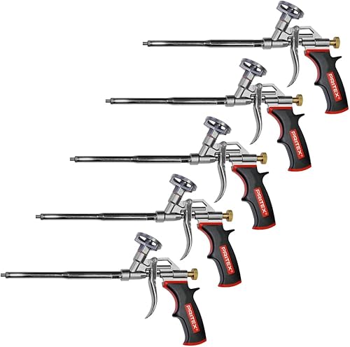 PRITEX – 5 x Schaumpistole inkl. Düsenverlängerung – Bauschaumpistole für Pistolenschaum, Bauschaum, Montageschaum uvm. – Metallpistole mit gummiertem Handgriff – Montagepistole für präzise Dosierung