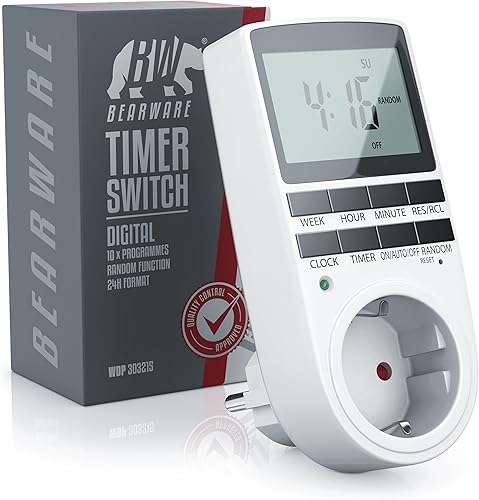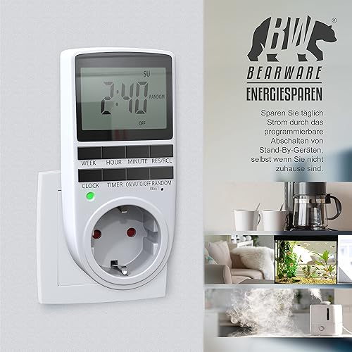 CSL - Zeitschaltuhr digital - 2,1' LCD-Display 5,3 cm - 3680W - Digital-Zeitschaltuhr mit 10 konfigurierbaren Programmen - Back-Up Reserve-Akku - Zufallsschaltung - Berührungsschutz