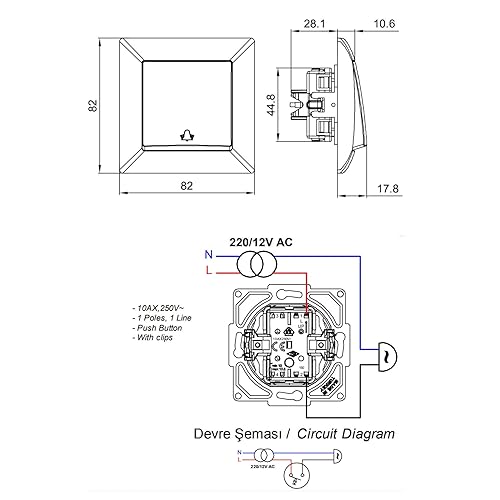 Unterputz Taster, Klingel-Symbol, Steckklemme, All-in-One, Serie G1 reinweiß