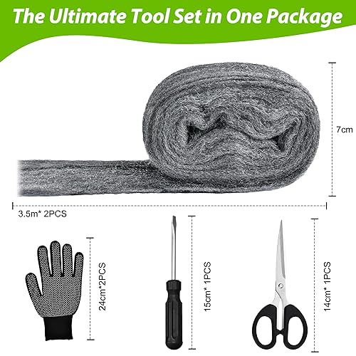 DazSpirit 2 Stück Stahlwolle gegen Mäuse, 3,5 m Stahlwolle Fein 0000 mit Handschuhen, Schere und Schraubendreher, Edelstahlwolle gegen Ratten zum Abdichten von Lücken, Reinigen, Polieren