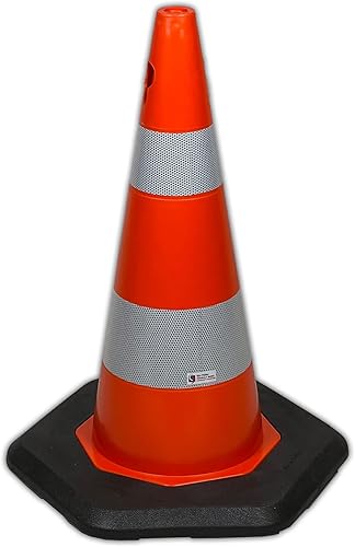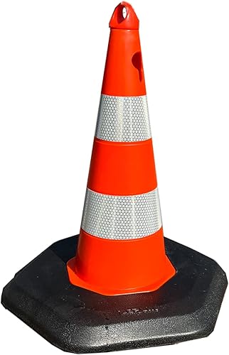 UvV-Leitkegel Ecolight grosser Fuss, Kegel Warnpylone, Verkehrshütchen reflektierend 2 Reflex Folienstreifen Klasse RA2/C (Höhe 70 cm)