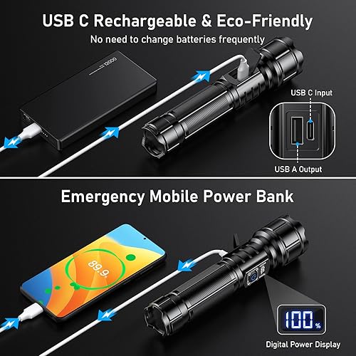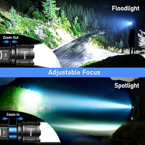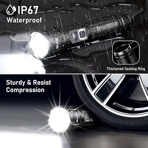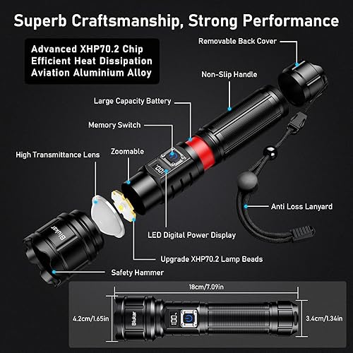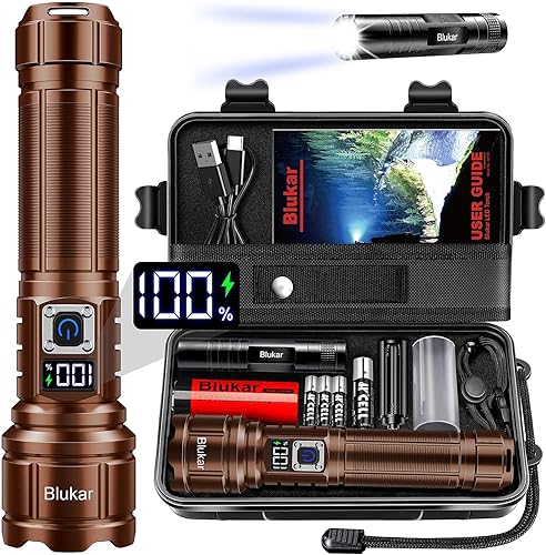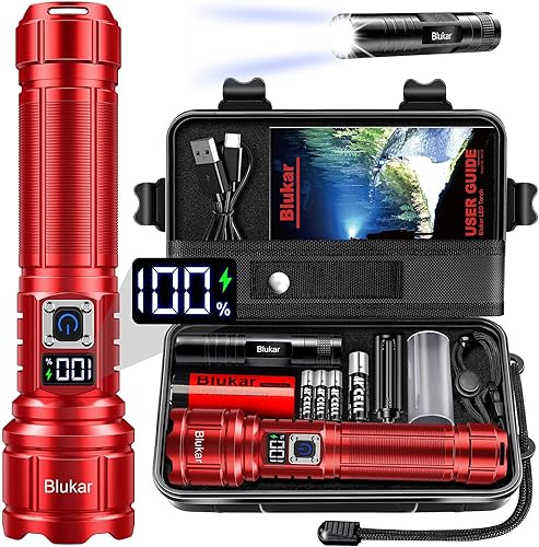 Blukar Taschenlampe LED Aufladbar, 500000 Lumen Extrem Hell Taschenlampen Zoombare Taktische Handlampe mit 5 Lichtmodi, IP67 Wasserdicht Flashlight Torch für Camping, Outdoor, Notfäll