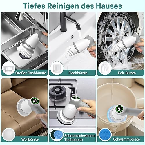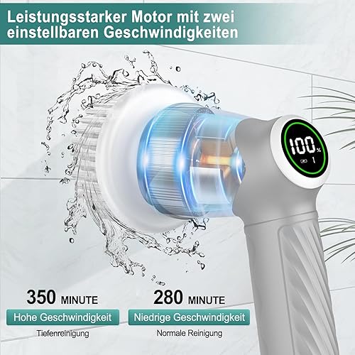 Elektrische Reinigungsbürste, Reinigungsgerät für Haushalt, Kabellos Power Spin Scrubber mit 7 Bürstenköpfen, 2 Speed Integrierte übertragung, Cleaning Brush für Fliesen, Duschen, Glas, Bad
