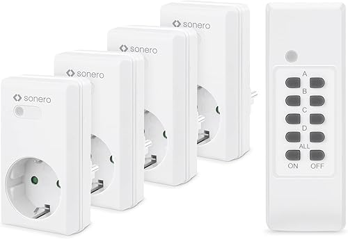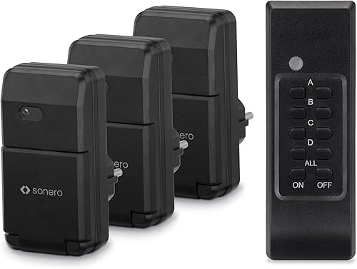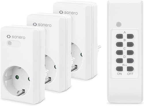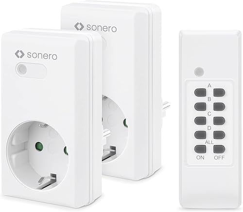 Sonero Satz Funksteckdosen, 2 x Funksteckdose und 1 x Funkfernbedienung, 1100 Watt, maximale Reichweite 30 m, Innenbereich, weiß (deutsche Version)