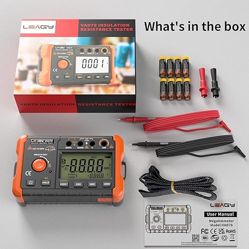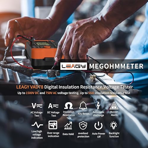 LEAGY VAD78 Digitales Isolationswiderstandsmessgerät - Präzisions-Megohmmeter für Gleich-/Wechselspannungsprüfung (20-1500V, 20-750V) und Widerstandsmessung (0-5000 Megohm)
