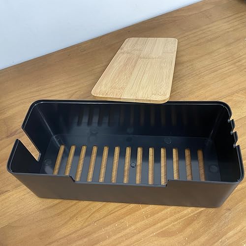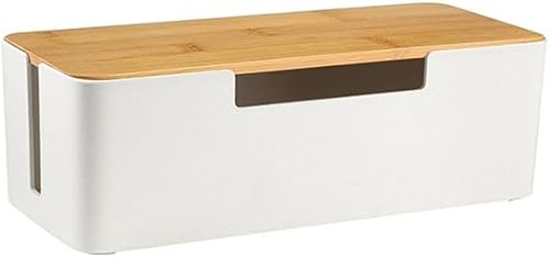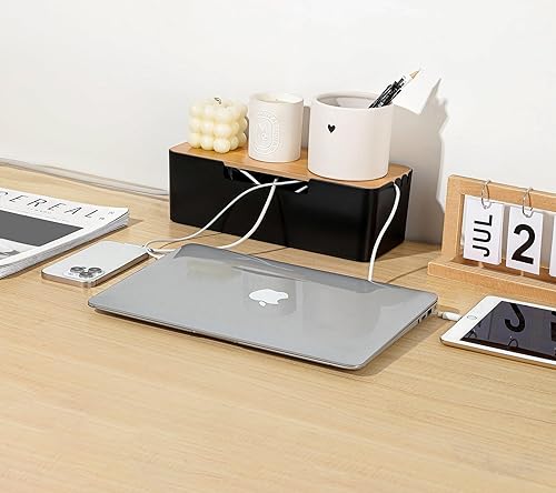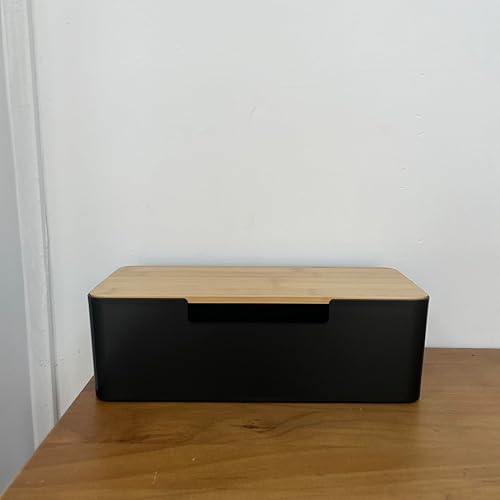BUYSK ABS Cord Organizer Box mit hölzernem Deckel, Kabel-Management-Box für Power Strips oder Surge Protectors, Desk Cable Tidy Box für Büro Home (Schwarz)