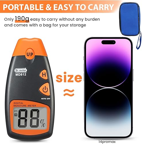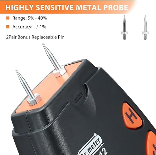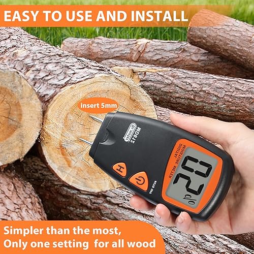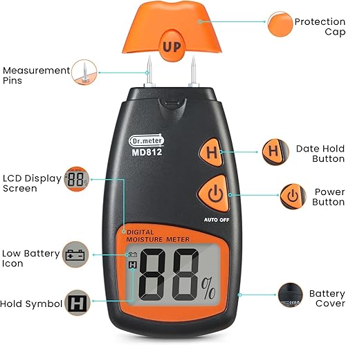 Feuchtigkeitsmessgerät, Dr.meter Pin-Typ Holzfeuchtemessgerät Holz Feuchtigkeitsmesser für Holz und Baustoffe mit LCD-Display, Automatische Ausschaltfunktion (inklusive 9V Batterie und 2 Ersatzsonden)