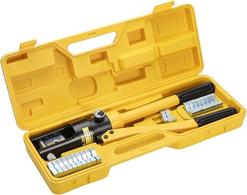 HSEAMALL 10T Hydraulische Presszange Crimpzange 4-70 mm² Kabelschuhzange Hydraulische Quetschzange für Kupfer-Aluminium Elektrische Kabelschuhe 9 Paar Matrizen