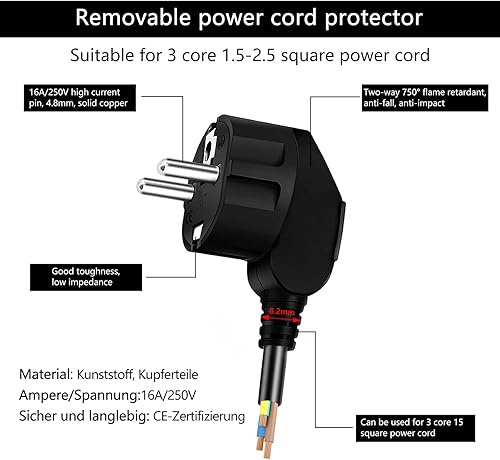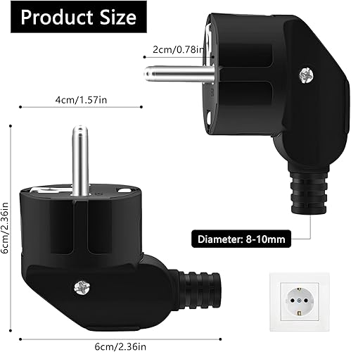 8 Stück Schuko Stecker 250V/16A Eurostecker Stromstecker Winkelstecker Stromstecker Schutzkontakt Stecker für 8-10mm Kabel für Haushaltsgeräten Kleingeräten