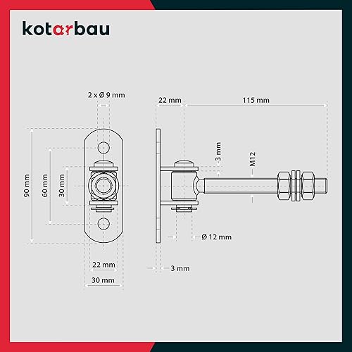 KOTARBAU® 2er Set Einstellbares Torscharnier M12 Die Perfekte Lösung für jede Toranlage Torangel Regulierbar Verzinkt