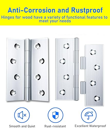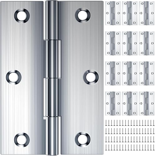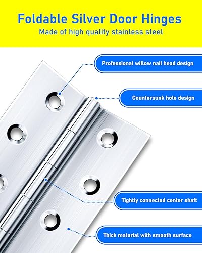 12 Stück Scharniere Klappbar 75 × 50mm, HOLMOL Scharniere Edelstahl Aussen, Faltbar Silber Edelstahl Scharniere, Scharniere mit 72 Stück Schrauben, Türscharniere für Holztüren, Fenster