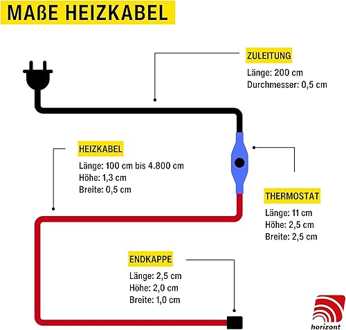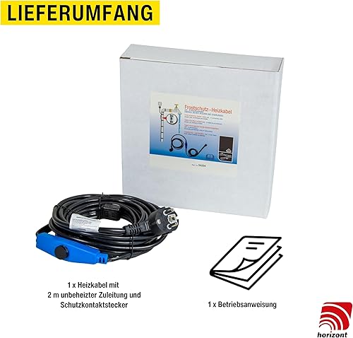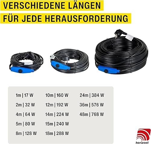 horizont Frostschutz Heizkabel mit Thermostat 1 bis 48 m, ideal für Wasserleitung oder Pflanzen, wasserdichte Begleitheizung, Dachrinnenheizung selbstregulierend, Rohrbegleitheizung | 2 m