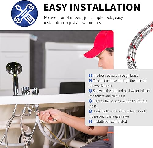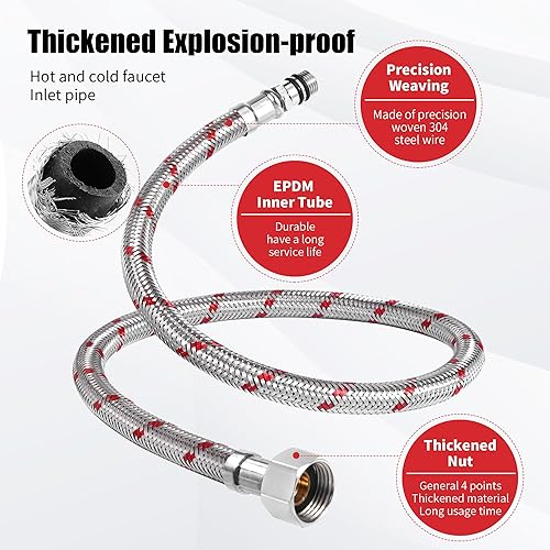 2er Set Anschlussschlauch Armatur G3/8 x M10,Wasserhahn Schlauch Verlängerung Flexschlauch Verlängerung Edelstahl Panzerschlauch Wasserhahn Anschlussschlauch 3/8 Zoll für Mischbatterie