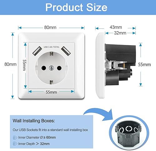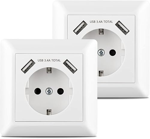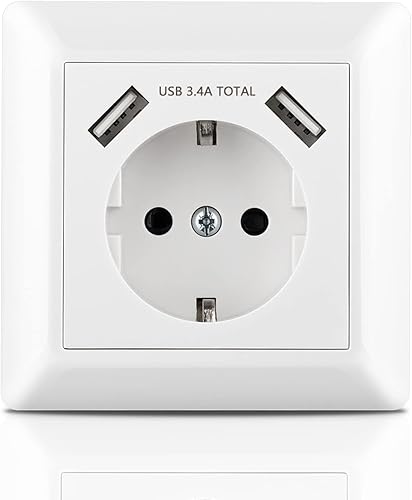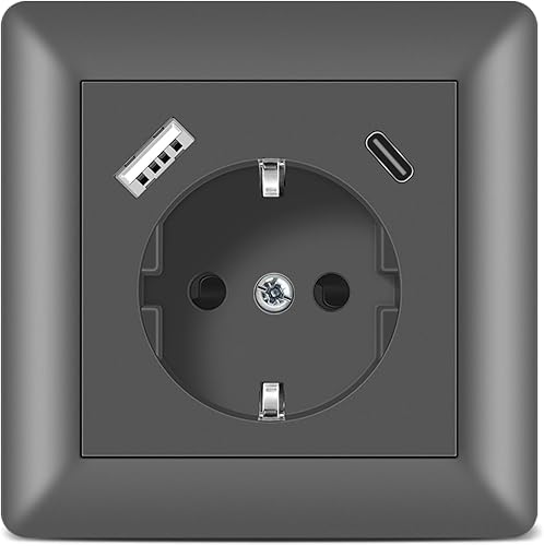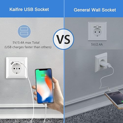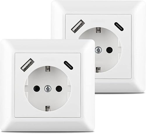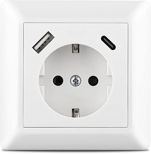 Kaifire USB C Steckdose, Schuko Unterputz Steckdose mit USB Anschluss und Typ C Port max.3.4A System 55 Reinweiß Glänzend Schutzkontakt Wandsteckdose Passent in Standard Unterputzdose für Smartphone