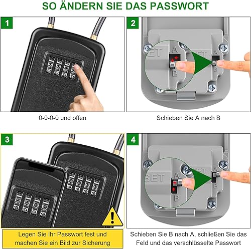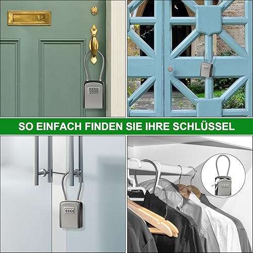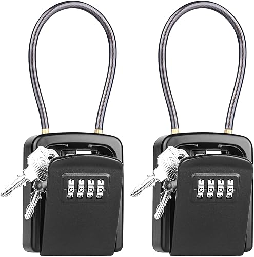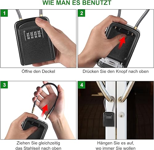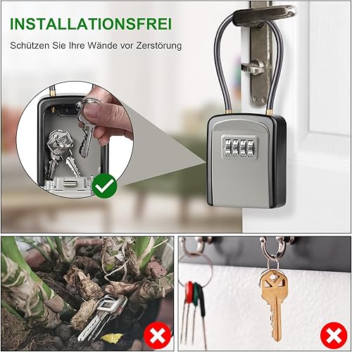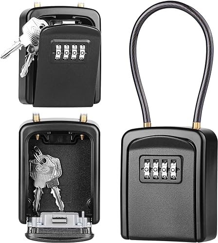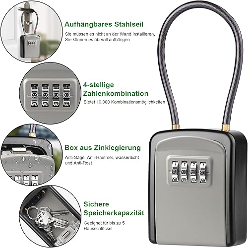 Diyife Schlüsseltresor mit Abnehmbares Kabel, Wasserdichter Schlüsselkasten Schlüsselbox für den Außenbereich, Aufhängbare Kombination Schlüsselsafe für Zuhause, Garage, Schule - Schwarz
