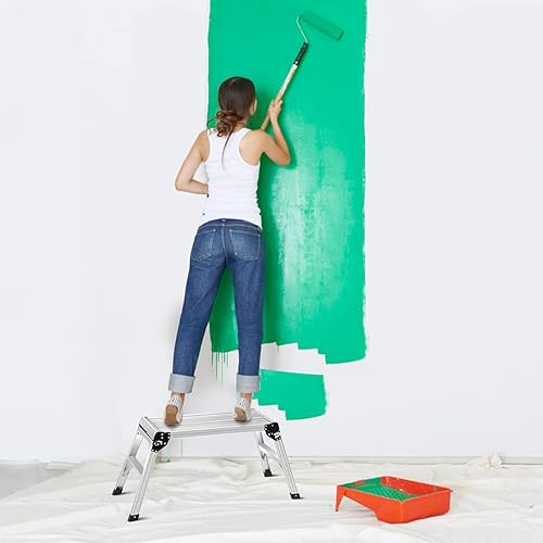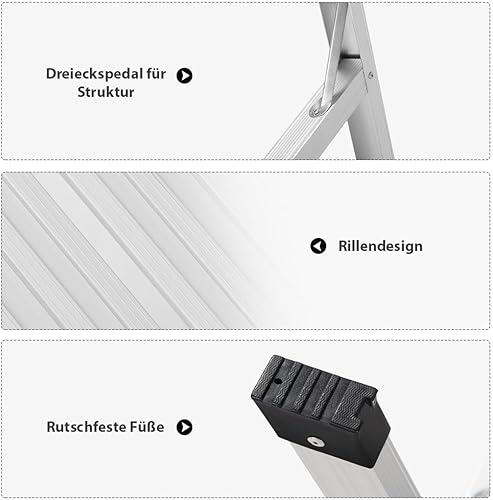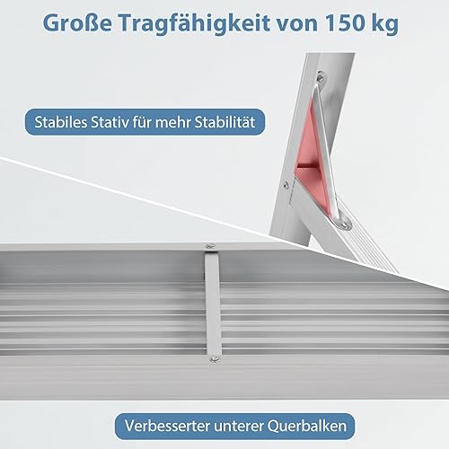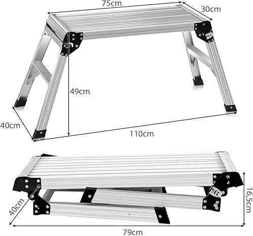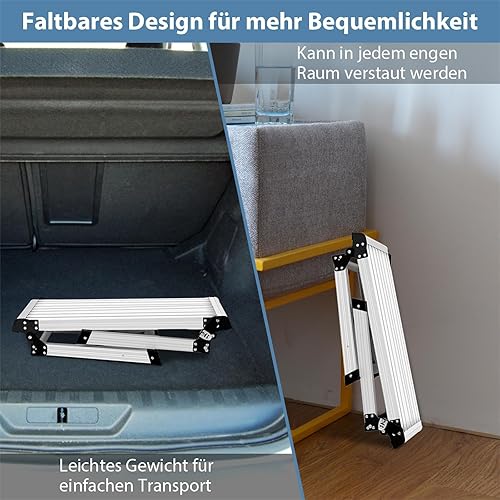 SOARS Arbeitsplattform klappbar, tragbare Aluminium Arbeitsbühne, Trittbank bis 150 kg belastbar, Plattformleiter mit Anti-Rutsch-Matte & Sicherheitsschlössern, Stufenleiter für Zuhause & Garage