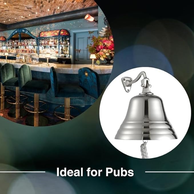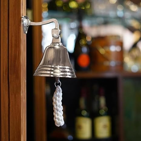 ACL Bar Home Pub Zubehör Handtürklingel - Wandmontierte Bar-Türklingel Nautische Dekorationen - Einzigartige Silberne Glocke mit Lauten und knackigen Klängen Ideal für Weihnachten, 5-Zoll-Pub
