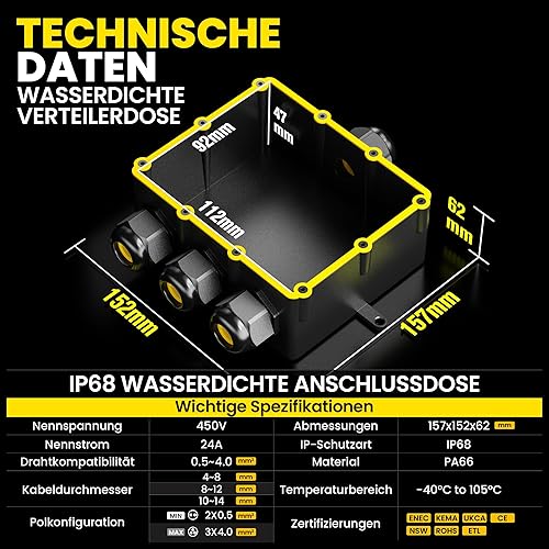PEBA Wasserdichte Abzweigdose, Y-Typ 3 Wege Kabelverbinder, IP68 Wasserdichte Verbindungsdose, Kabelverbinder Aussen, Elektrischer Außenverteilerdose, Erdkabel Klemmdose für 4-14 mm Kabeldurchmesser