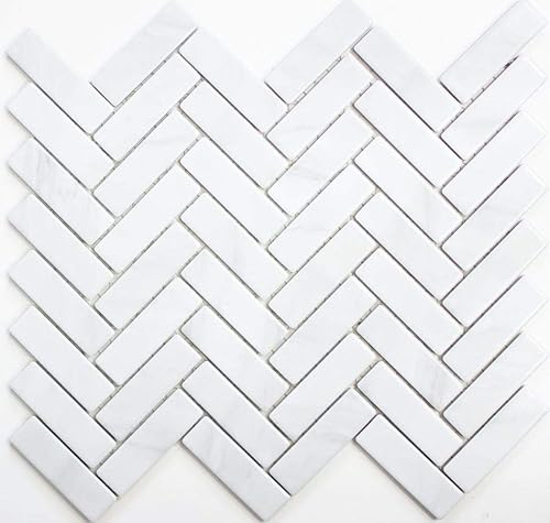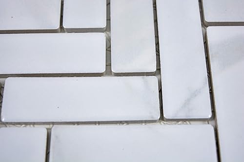 Mosaik Fliese Keramik Fischgrät Steinoptik weiß grau Küchenrückwand Badewannenverkleidung Thekenverkleidung Mosaikfliese WC Fliesenspiegel Wandfliese | 10 Mosaikmatten