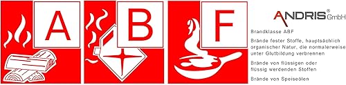 Feuerlöscher 2L ABF Fettbrand Schaum Kombi-Löscher DIN EN3 - sehr handlich - mit KFZ Halter + ANDRIS® Prüfnachweis & ISO Symbolschild