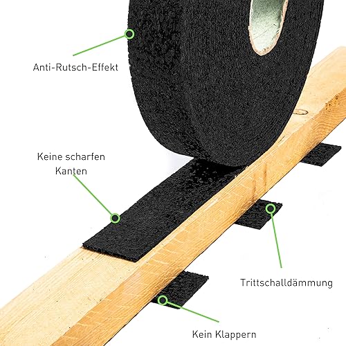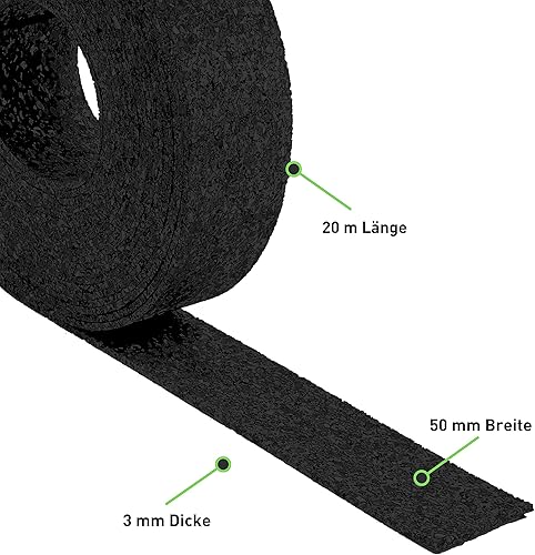 Terrassenpads auf Rolle (20m x 50mm x 3mm) - Gummigranulat, Bautenschutzmatte, Unterlegpads, Terrassenbau - Streifen Gummipads als Unterlage für WPC Terrassendielen und Terrassenplatten - 20Mx50x3mm