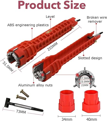 8 In 1 Wasserhahn Rohrzange,Installer Werkzeug Rohrzange,Sink Faucet Installer,Multifunktionaler SpüLenschlüSsel Installer FüR SpüLe/Bad (Rot)