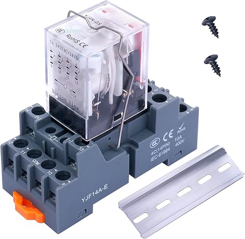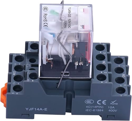 Taiss/Relais DC 12V 14 Pins 5A LED Spule Leistungsrelais mit hochwertiger Basis DPDT 4NO 4NC mit DIN Schiene YJ4N-GS DC 12V