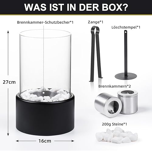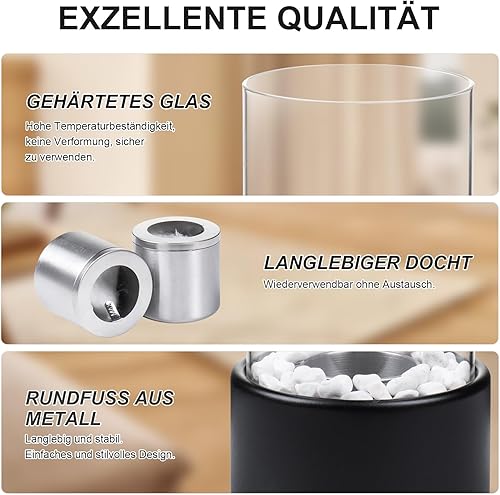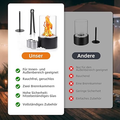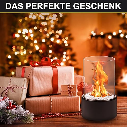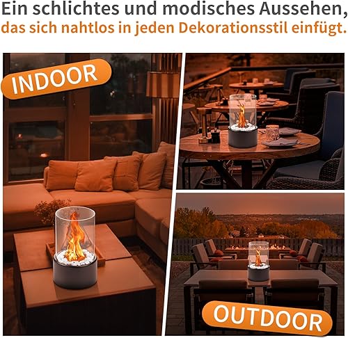 Tischkamin [3h Brenndauer] | Tischfeuer Outdoor & Tischfeuer Indoor | Bio Ethanol Kamin mit Verstellbare Flamme & Abnehmbarem Sicherheitsglas | Bioethanol Tischkamin Balkon Deko