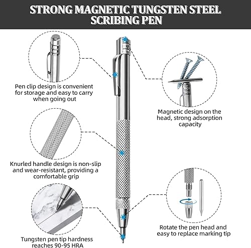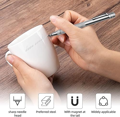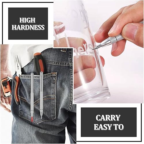 Gravurstifte aus Wolframkarbid Wolframcarbid Stift Hartmetallspitze Scriber 2 Stück Anreißnadel Hartmetall mit Rot Schutzhülle Gravieren Stift für Keramik, Edelstahl und Glas