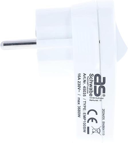 as - Schwabe Winkelstecker mit Schalter - Schutzkontaktstecker mit doppeltem Schutzkontakt - Anschluss Leitungen bis max. 1,5mm² - 2-polig schaltend - 230V - 16A - IP20 - Weiß - 45035