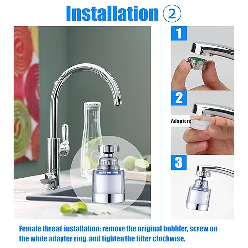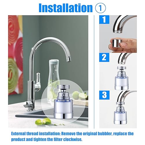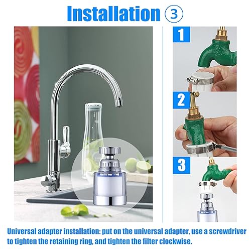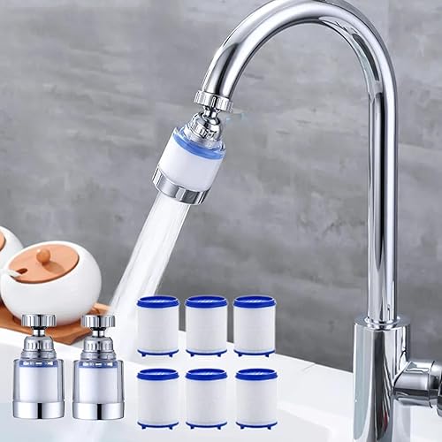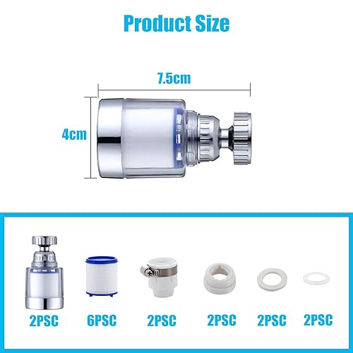 2 Stück wasserfilter wasserhahn,wasserhahn filter für trinkwasser,mit 6 Stück PP-Baumwolle Filterelement Und Universaladapter für Spüle, Küche, Badezimmer
