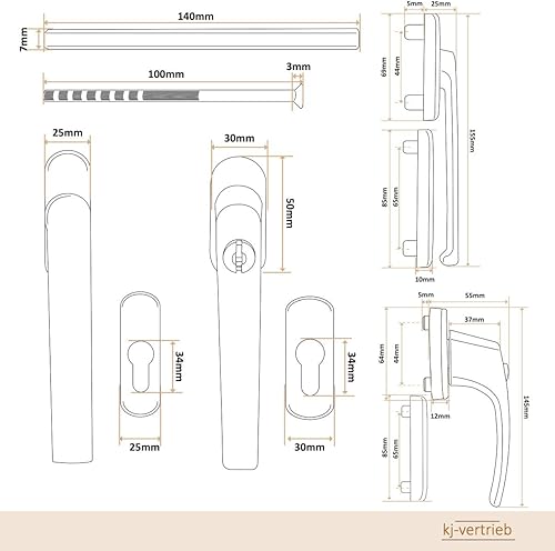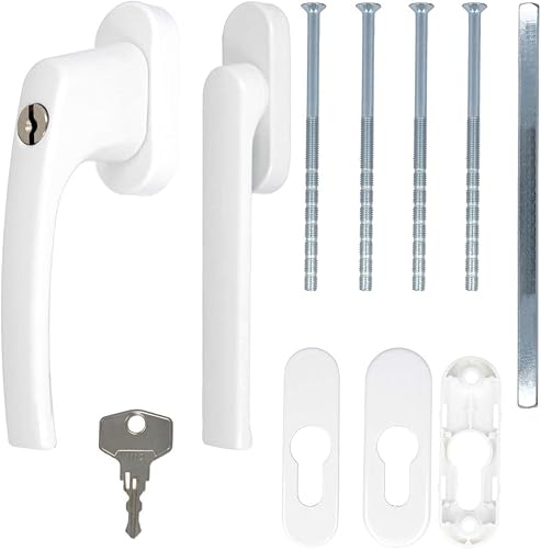 Alu Terrassentürgriff Balcony mit Flachgriff - abschließbar, Farbe:Weiß RAL 9016
