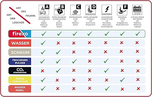 Firexo Kleiner Feuerlöscher (2 Liter) – alle Arten von Feuer – Mehrzweck-Feuerlöscher für zuhause, Küche, Grill, Zuhause und Büro