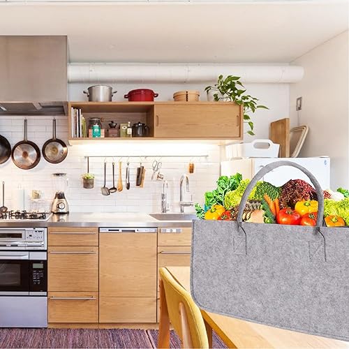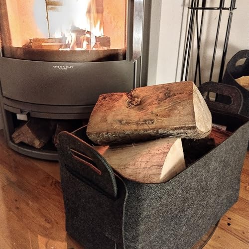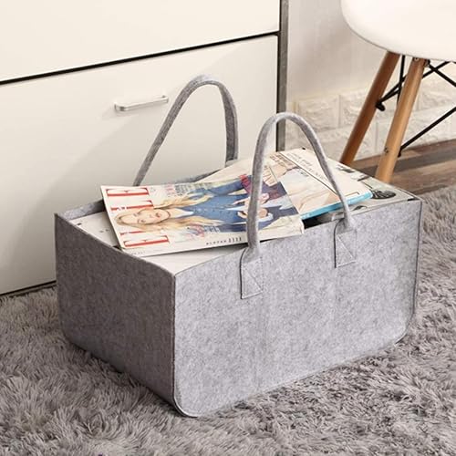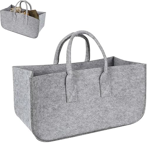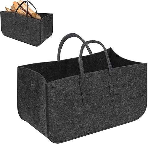 Filztasche Einkaufskorb Holzkorb Groß Multifunktional Filzkorb Einkaufs Tasche Brennholzkorb Faltbarer Kaminholztasche Shopping Bag 50x25x25cm (Dunkelgrau)