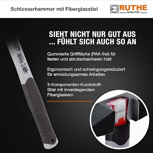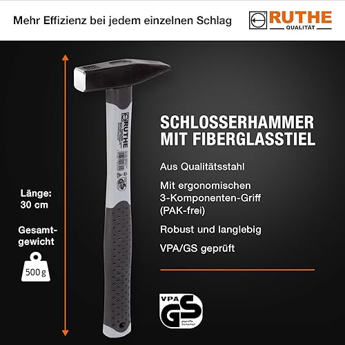 Ruthe 3003017119 Schlosserhammer deutsche Form VPA/GS mit Fiberglasstiel, 300 g