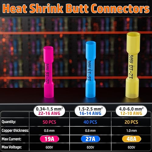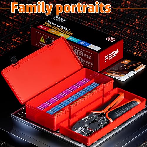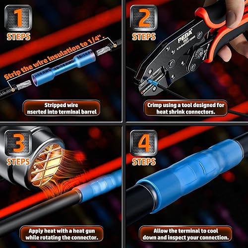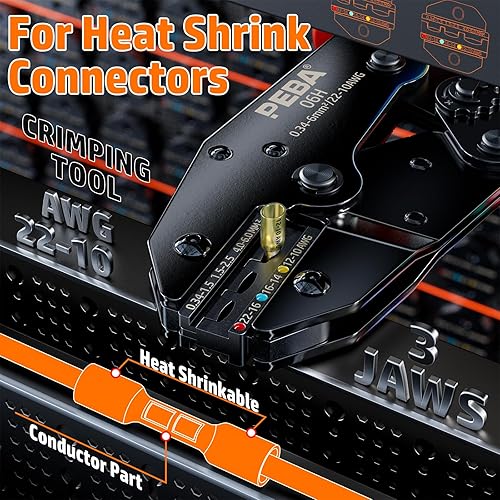 PEBA Crimpzange für Schrumpfschlauch 0,34-6 mm² Kable, mit 3 Größen Stoßverbinder Set - Quetschverbinder Set - Ratschen Crimper - krimperzange - Kabelverbinder Wasserdicht - UL Listed