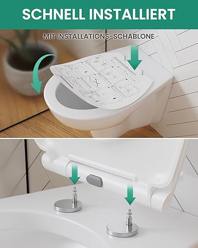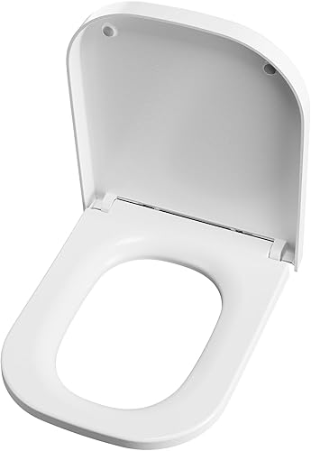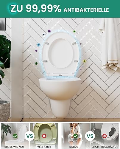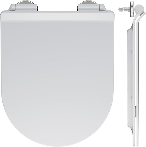 ANYCEE Toilettendeckel mit Absenkautomatik, WC Sitz aus Duroplast, Klodeckel mit Antibakterielle, Toilettensitz D-Form, WC Deckel mit Quick-Release-Funktion, Toilettenbrille universal, Klobrille Weiß