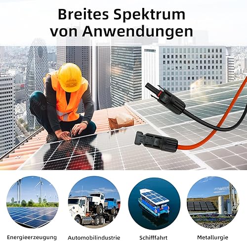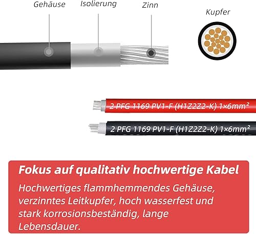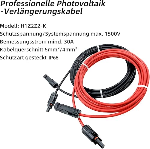 Profi-Verbindungskabel Verlängerungskabel (6mm²/4mm²), rote und Schwarze Linien, Solarkabel inkl. montierter beidseitig Solarstecker(4mm²-3M)