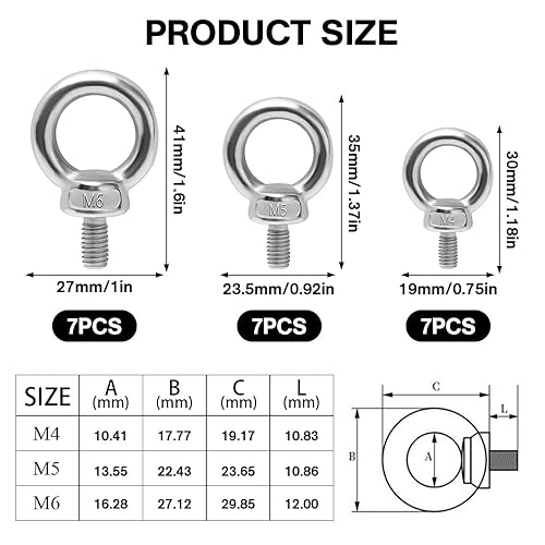 Sxutop 21 Stück Ringschraube Edelstahl M4 M5 M6 Runde Ringbolzen 304 Edelstahl Augenschraube Augenbolzen mit Ring Augbolzen Sichere Installation Außengewinde Ringschraube für Befestigens und Hängens